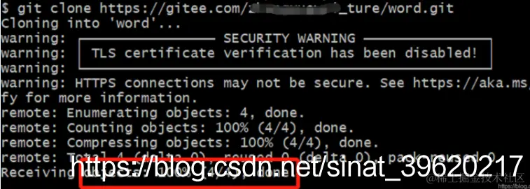 使用git命令git clone进行下载项目,第一次下载的时候需要输入码云的账号和密码,如下图: