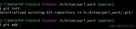 然后执行:git add 文件名(这个点. 表示当前目录所有内容)