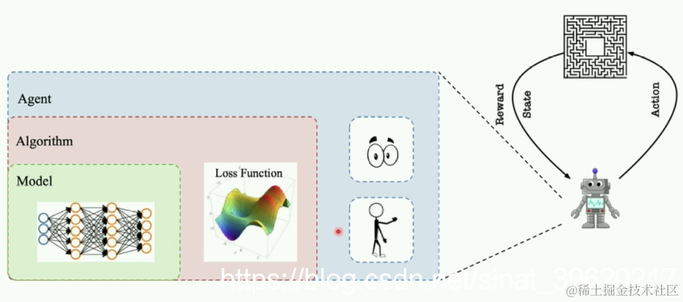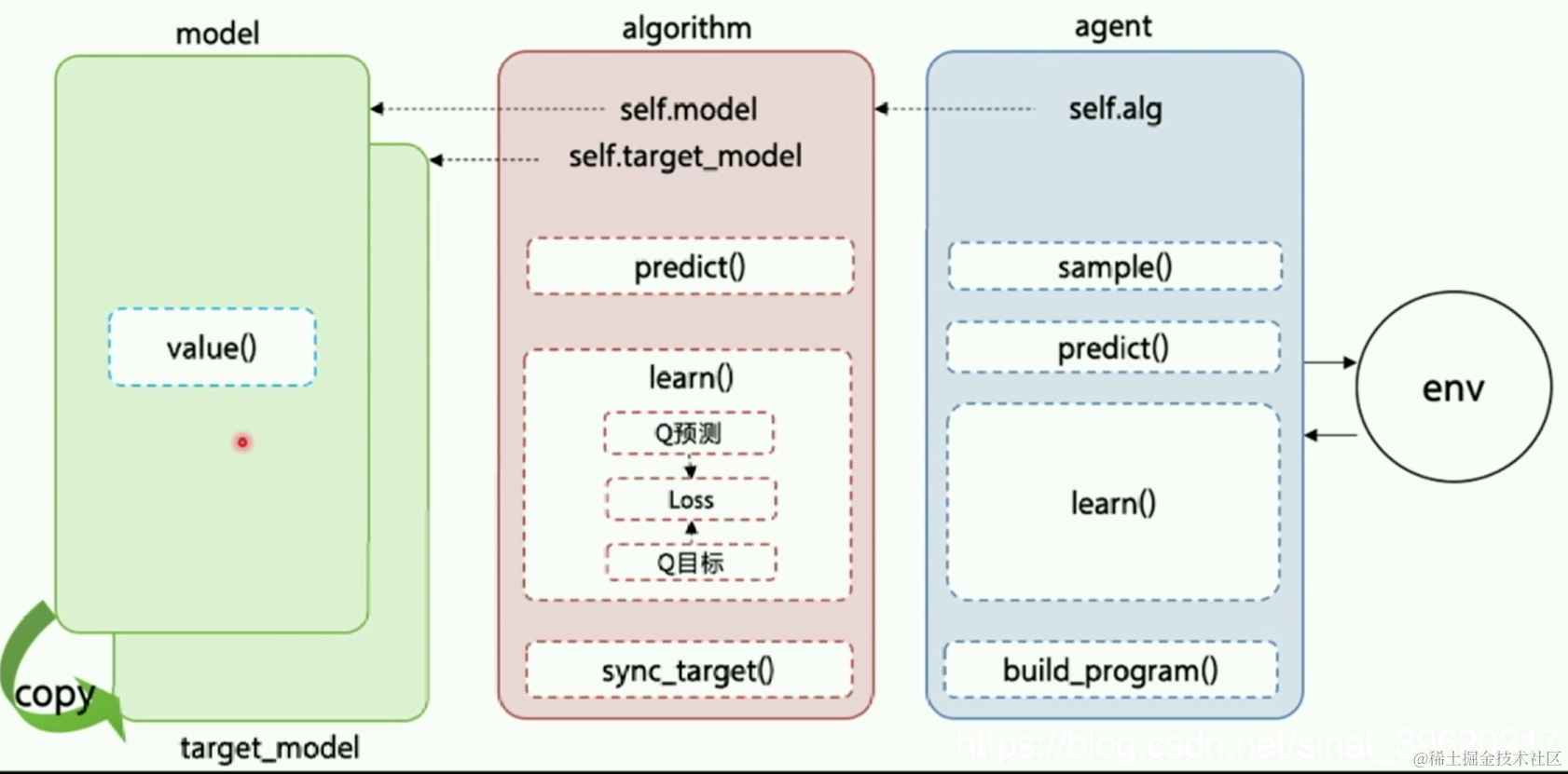 Agent负责算法与环境的交互,在交互过程中把生成的数据提供给Algorithm来更新模型(Model),数据的预处理流程也一般定义在这里。