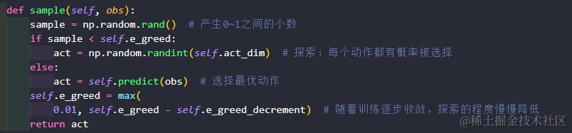 - pred_value拿到的是pred_value = [[2.3, 5.7, 1.2, 3.9, 1.4]],拿到所有a对应的Q了,然后把Q先转换到onehot向量3 => [0,0,0,1,0] 2 => [0,0,1,0,0]