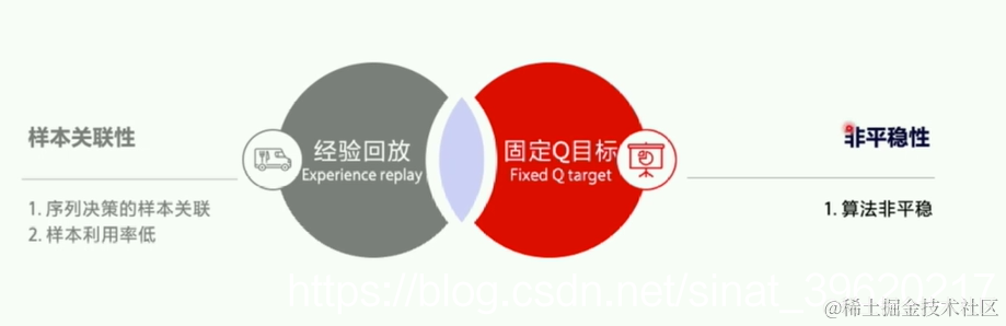 Experience Replay:主要解决样本关联性和利用效率的问题。使用一个经验池存储多条经验s,a,r,s',再从中随机抽取一批数据送去训练。 - 固定Q目标