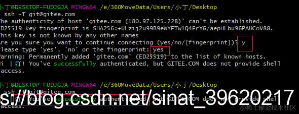添加公钥完成后进行测试公钥(测试SSH链接)