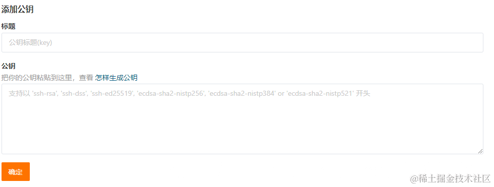 打开码云,鼠标移入头像,点击设置。点击 SSH公钥,打开配置页面。确定。