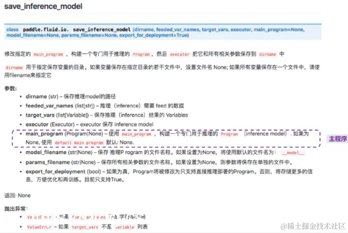 - 在训练任务过程中, 通过调用paddle.fluid.io.save_inference_model`实现模型的保存,保存后的目录需要可以被在线服务使用. 我们以房价预测的线性回归任务为例, 具体代码如下