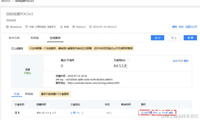 - 线上服务如果连续超过14天无调用将自动调整为暂停状态.