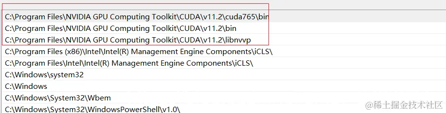 CUDA 安装完成后,环境变量中应该包含: