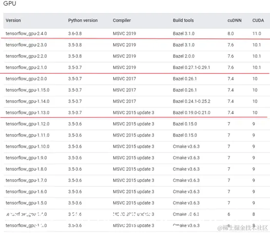 2.5.1 GPU版本对照: