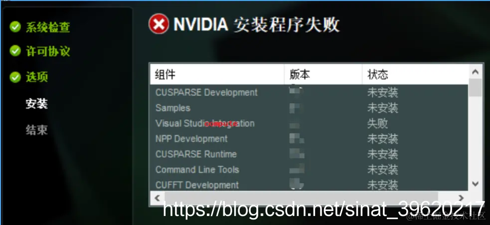 1. NVIDIA安装程序失败(组件全部未安装)------Visual Studio Intergration安装失败
