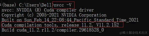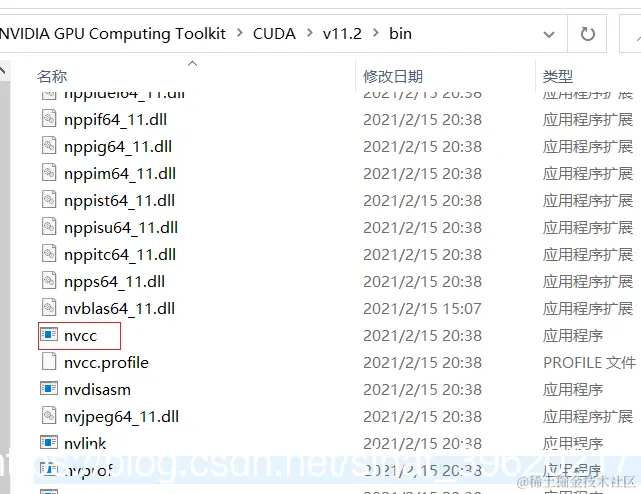 如果命令无法识别,则说明安装失败。同时我们也可从 CUDA 的安装路径“C:\Program Files\NVIDIA GPU Computing Toolkit\CUDA\v11.2\bin”下找到“nvcc.exe”程序,