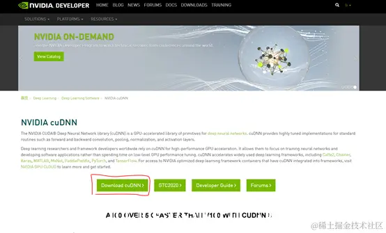 - 打开网址 developer.nvidia.cn/cudnn,选择“Do… cuDNN”,由于 NVIDIA公司的规定,下载 cuDNN 需要先登录,因此用户需要登录或创建新用户后才能继续下载。