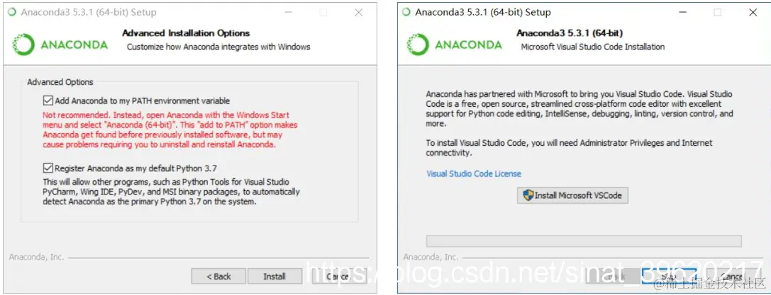 - 如图 所示,勾选”Add Anaconda to my PATH environment variable”一项,这样可以通过命令行方式调用 Anaconda 程序