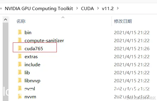 - 下载完成 cuDNN 文件后,解压并进入文件夹,我们将名为“cuda”的文件夹重命名为“cudnn765”,并复制此文件夹。进入 CUDA 的安装路径 C:\Program Files\NVIDIA GPU Computing Toolkit\CUDA\v11.2,粘贴“cudnn765”文件夹即可,此处可能会弹出需要管理员权限的对话框,选择继续即可粘贴