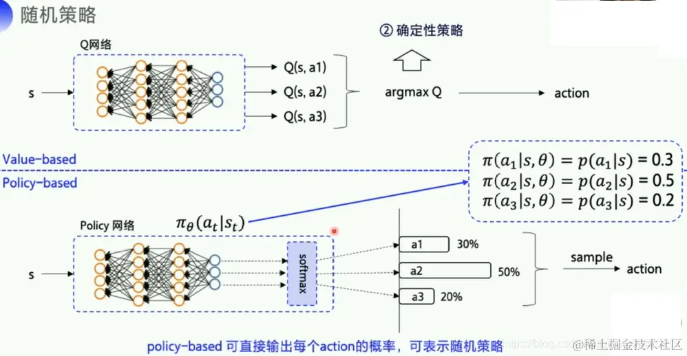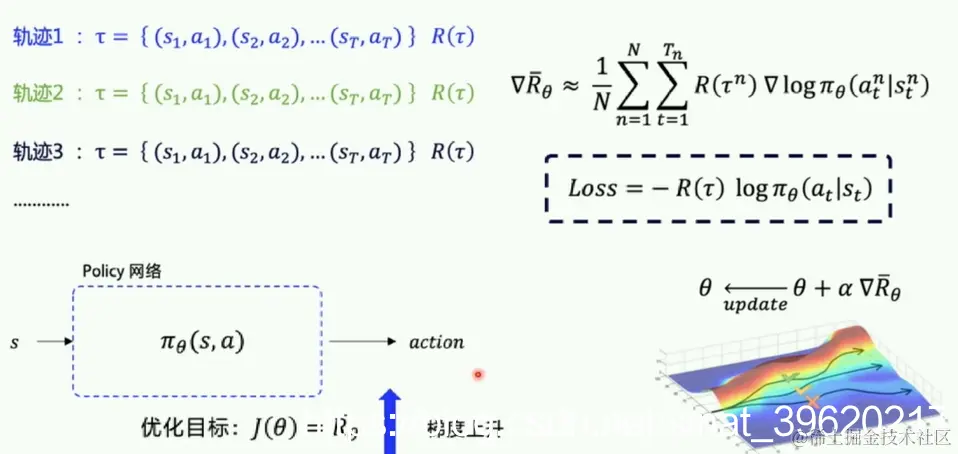 采用神经网络拟合策略函数,需计算策略梯度用于优化策略网络。