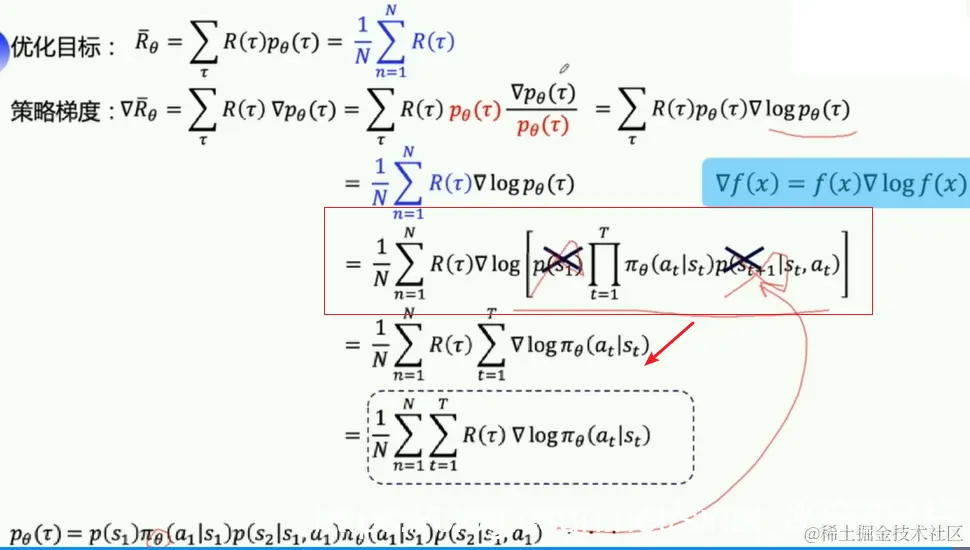 - 这里对theta求导,p和theta无关,直接删掉,连乘log变连加