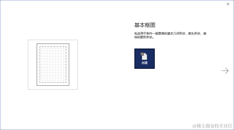 1.新建一个visio文件,选择“基本框图”。点击创建。
