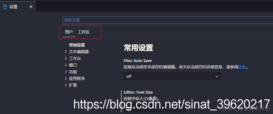 用户设置后对所有文件都生效,工作区只对当前项目生效!