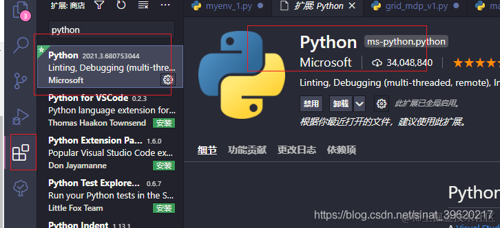 首先在vscode中安装python【在扩展中搜索进行安装】