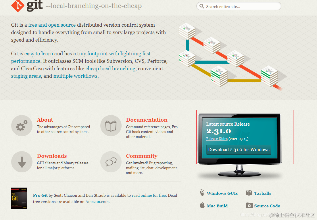 先到git官网下载自己电脑对应版本的git git-scm.com/