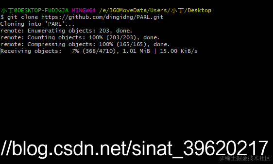 注意git clone 后面加的是你刚复制的地址。