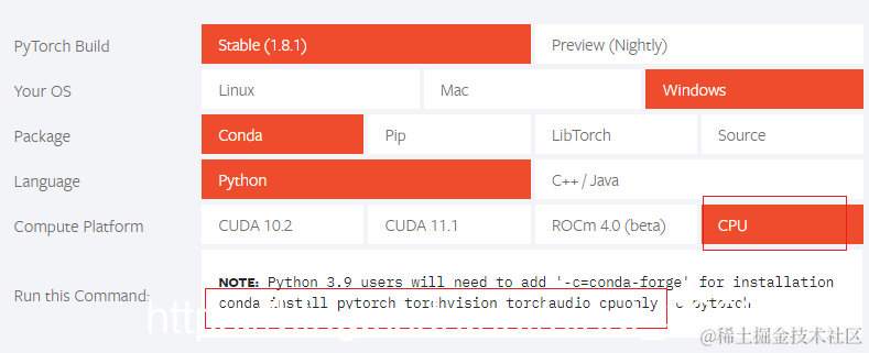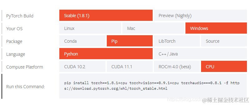 从官网上找到适合自己版本的安装pytorch的指令 pytorch.org/get-started…