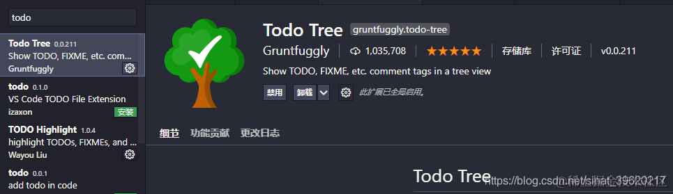 在vscode扩展中心,搜索 todo tree 然后安装,