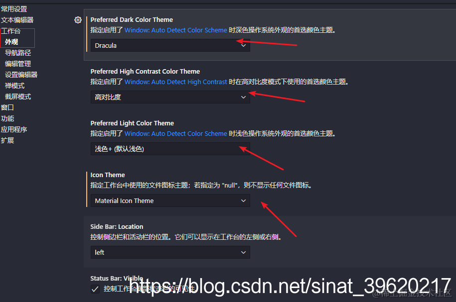 或者在设置--外观里面进行细致设置