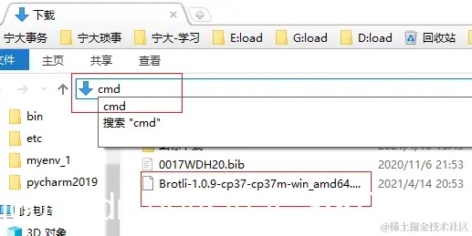 下载好后,在下载目录输入cmd调用命令面板,