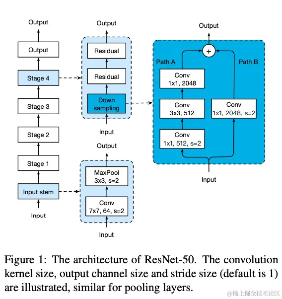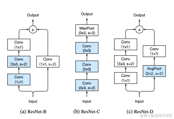 - 层数改变如图左下角,主要是为了减少计算开销,既减少参数。