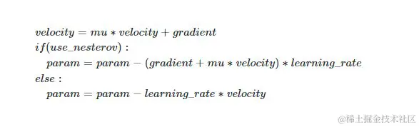 该优化器含有牛顿动量标志,公式更新如下: