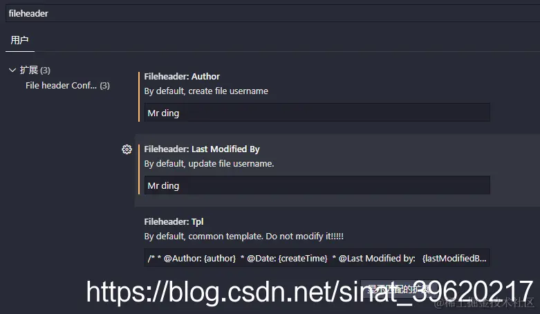 设置里修改搜索fileheader进行修改,重启vscode生效