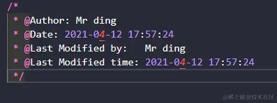 顶部注释模板,可定义作者、时间等信息,并会自动更新最后修改时间,ctrl + alt + i你可以在头部插入注释,ctrl + s保存文件后,自动更新时间和作者。