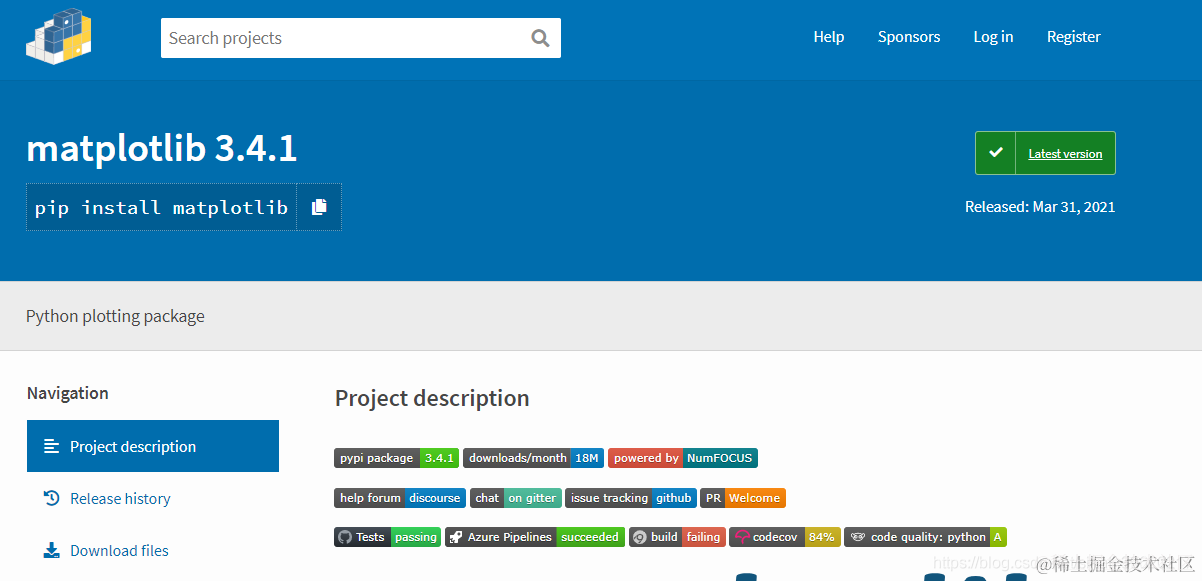 1,登陆官方pypi.org/project/mat…,下载安装包。可能打开有点慢