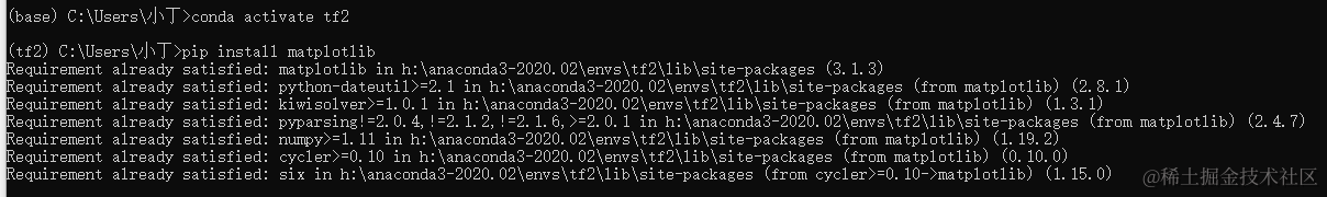 如果不清楚下载那个,可以参考下面的方法,直接在环境里装一下,如果没安装过会直接提示安装的版本,你去下载对应的即可。如果安装过了,就去相应路径看看文件下matplotlib的名称。