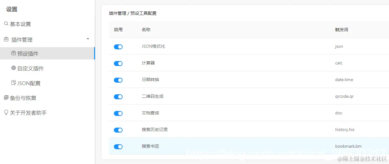 下面是默认插件设置