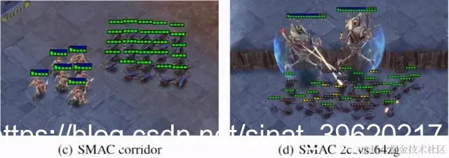图 2:StarCraftII 环境中的 2 个代表性地图:Corridor 和 2c vs. 64zg