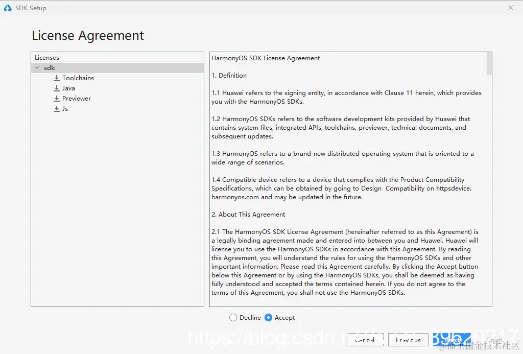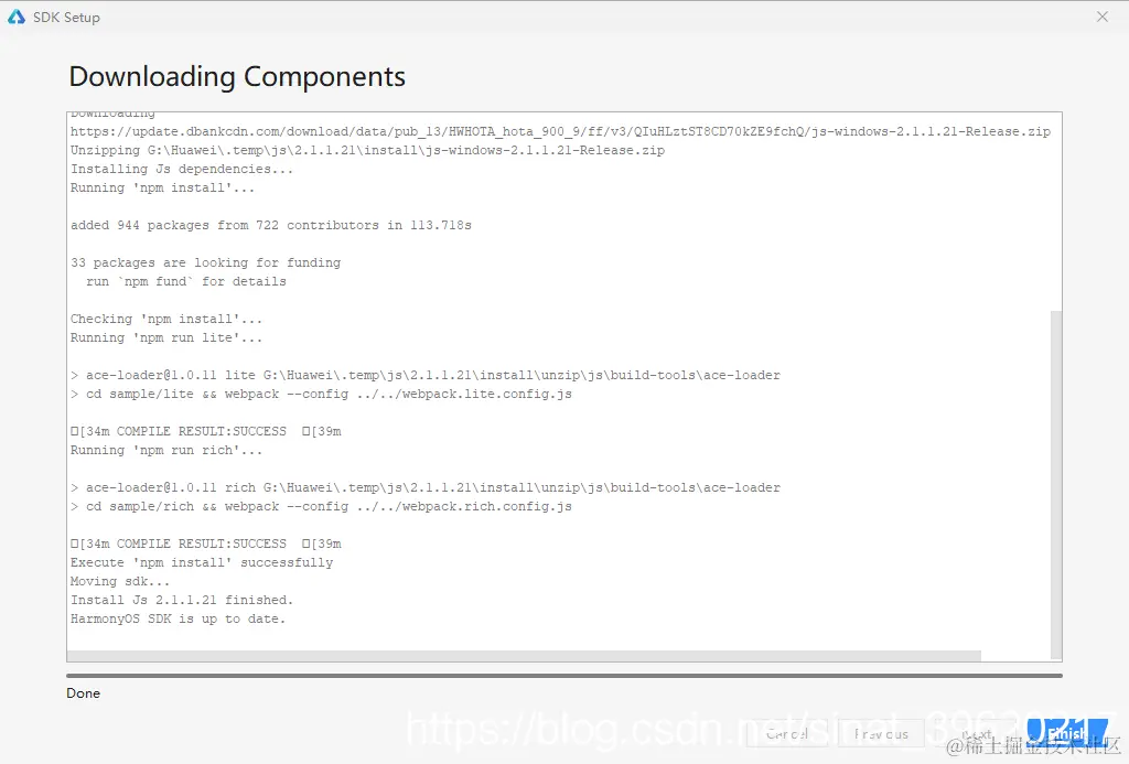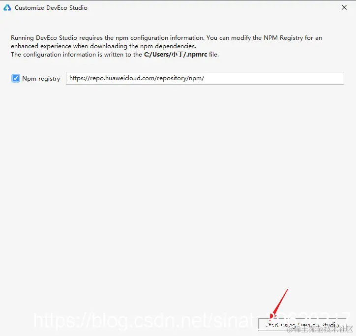 nmp配置界面,不用修改路径,直接点击“Start Using DevEco Studio”。配置HarmonyOS SDK,