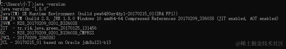完成后调出cmd界面查看jdk安装是否成功输入java -version,出现如下证明安装成功