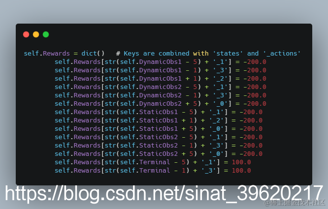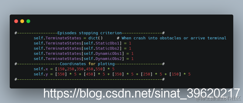 具体的思路是:在主函数里决定采取的action,然后传入step,在step里进行了障碍的移动和reward的更新后,判断该次行动带来的reward,以及此次训练是否需要结束等。故此函数需要返回值:下一时刻状态,reward,done info。