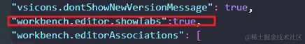 - 添加 “workbench.editor.showTabs”:true,之后重启vscode即可