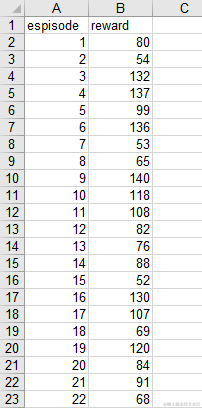 sheet.write(i+1, 1, reward[i]) # 第i+1行0列