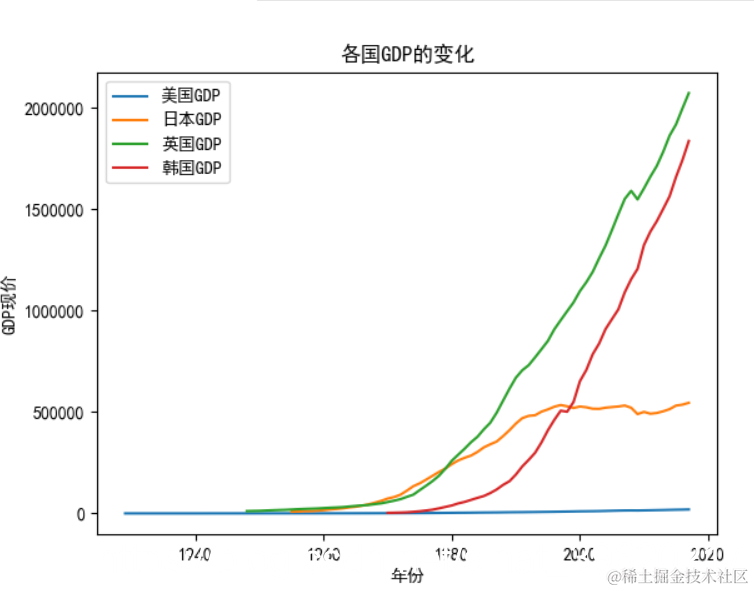 plt.plot(xAxis4, tw, label='韩国GDP')