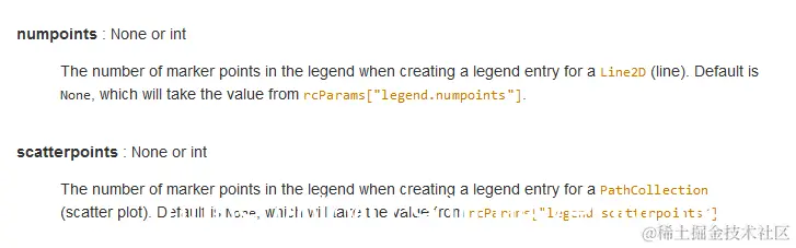 里面有介绍legend类中的参数,里面有介绍两个参数:numpoints和scatterpoints: