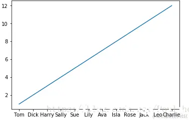 plt.xticks(x, ('Tom','Dick','Harry','Sally','Sue','Lily','Ava','Isla','Rose','Jack','Leo','Charlie'))