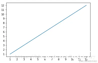 同理,对于yticks()函数定义和xticks()函数定义完全相同。对于第一个例子,如果希望在y轴上的刻度线也显示1到12所有的整数,则将lens(1,13,1)赋予yticks()的locs参数即可: