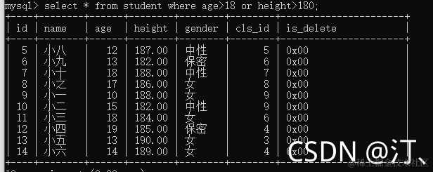 当数据量比较大的时候,千万别用 select * from student;会占用太多内存;因此采用条件查询;