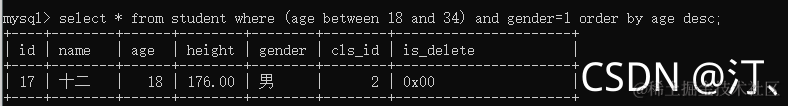 select * from student where (age between 18 and 34) and gender=1 order by age desc;