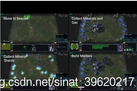 星际争霸的环境大家应该也已经很熟悉了,作为即时策略的代表环境,DeepMind也研究了很长时间,AlphaStar也取得了很亮眼的表现,另外今天国内启元的星际指挥官的挑战赛,表现也不赖(虽然全屏 ),维京和多线用的666,血虐TIME。也有很多知名算法是基于星际环境,如大Qmix,COMA等。这个SMAC环境比DeepMind的pySC2 github.com/deepmind/py… 更侧重decentralized场景和单元控制,更易去验证一些ma的算法。场景如下: