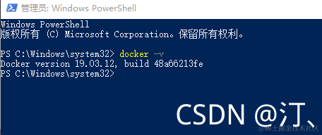 如果没勾选创建桌面快捷图标,也可以简单验证下是否安装成功,在PowerShell执行命令docker -v,查看能否输出docker版本。