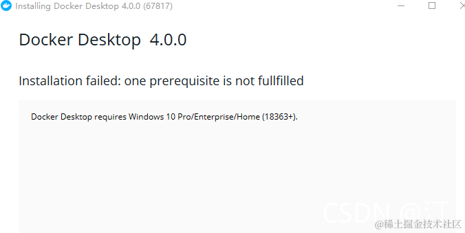 Docker 支持 WIN10 的专业版,如果使用家庭版则会造成系统版本冲突了!
