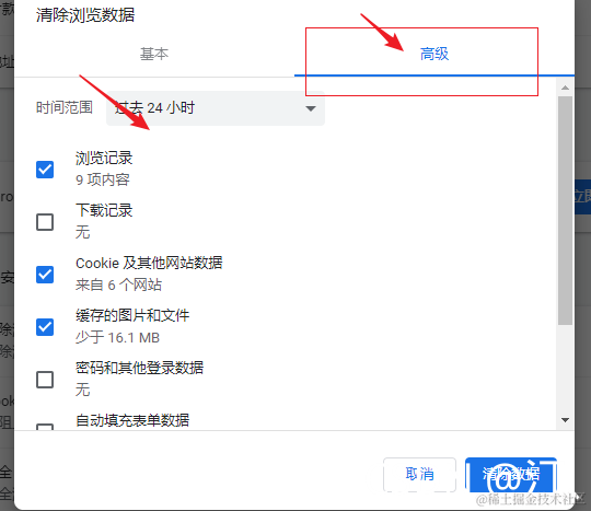 总结一个问题:csdn发布文章页面为空或者创作内容管理为空 汀丶人工智能 2023-03-08 82 阅读1分钟 总结一个问题:csdn发布文章页面或者创作内容管理为空 解决方案: 打开chrome浏览器的设置: 点击清除数据: 选择高级里清除数据,一般24小时就可以了,不行就7天